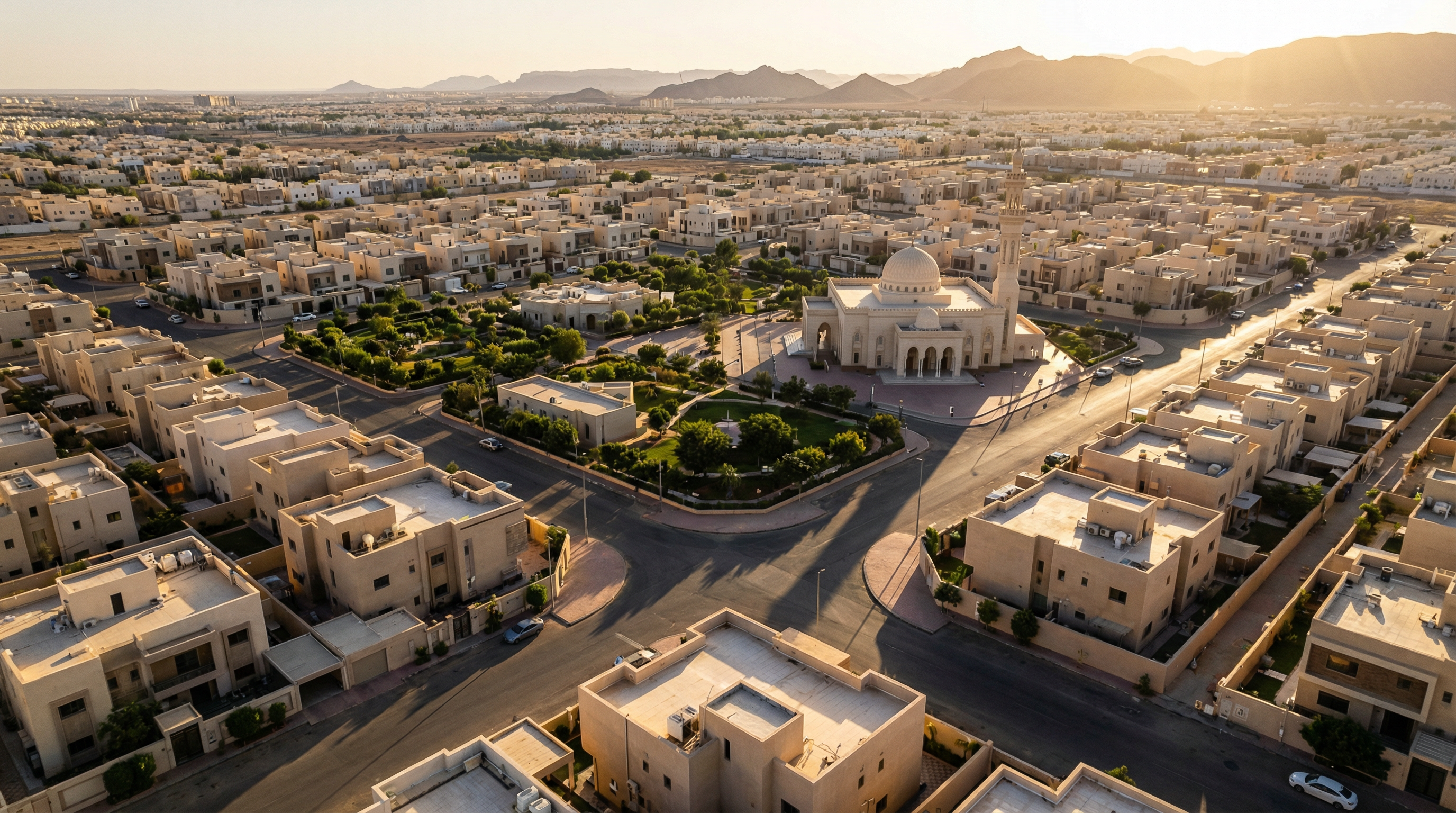 حي سكني غربي بمرافق حديثة وتوصيلات جيدة.